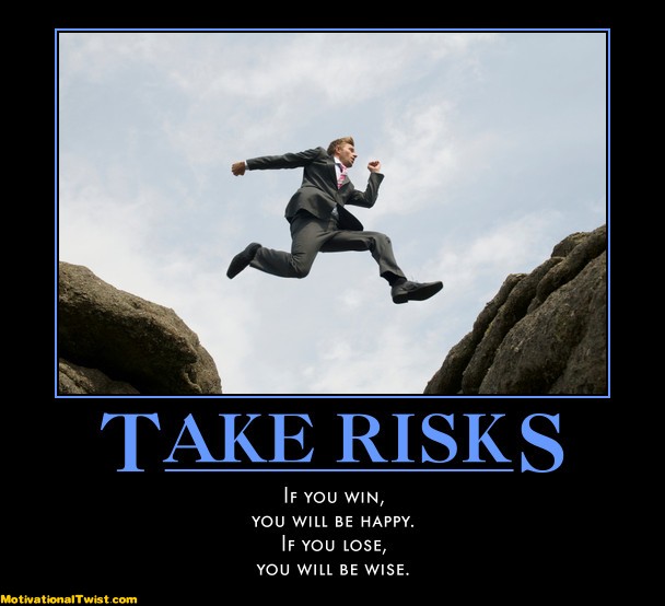 If you spend more time examining the loss ratio in all areas of your life rather than the gain its possible fear has you stuck. Some of us are more adventurous than others so taking risk is normal for them. Then there are a group who are cautious and careful in living. It is not my heart to try and change you:) I would encourage you to not live in a square with small vision but rather open your perimeters and begin to experience new things. I find that taking small risk helps those who are introverted and safe. It could be as simple as allowing yourself to talk to strangers and not being afraid to be social. For others a risk it could be starting a business at home that they always wanted to do. A risk is not always huge, some times it is small. In order for me to keep growing I realize risk taking is possible. Stepping out of our safety zone, and comfort zone allows us to experience life on different levels. Join me in living a fulfilling life, that allows you to grow and be happy:)